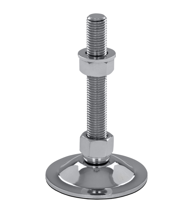 Maschinenfüße bzw. Gelenkfüße aus verchromtem Stahl haben durch die hochwertige Verchromung eine hohe Korrosionsbeständigkeit und eine glänzende Optik.