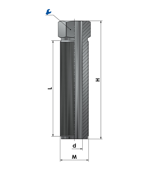 Hohlschraube mit Feingewinde M36x1,5x150mm, verzinkt