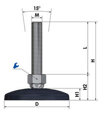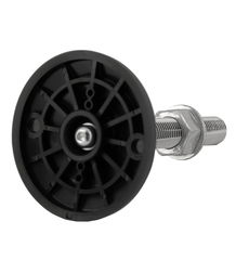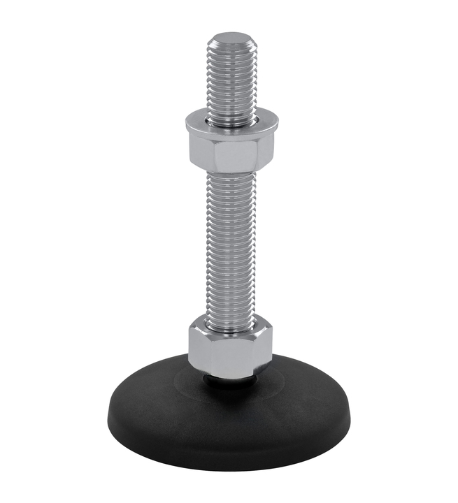 Der wartungsfreie Maschinenfuß KF100 ist stufenlos über das Gewinde höhenverstellbar (je nach Spindellänge) und bis zu einem gewissen Grad neigbar, was die präzise Montage und Ausrichtung vereinfacht.