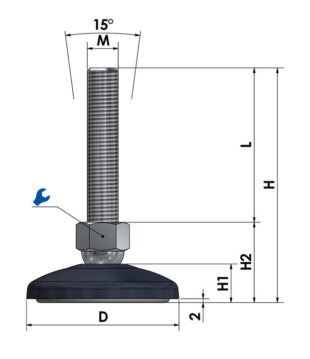 - Große Sechskant-Schlüsselflächen für die leichte Höhenverstellung