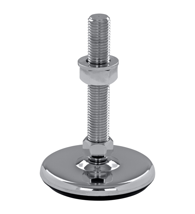 Maschinenfüße bzw. Stellfüße aus verchromtem Stahl haben durch die hochwertige Verchromung eine hohe Korrosionsbeständigkeit und eine glänzende Optik.