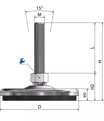 Der wartungsfreie Maschinenfuß SF125 ist stufenlos über das Gewinde höhenverstellbar (je nach Spindellänge) und bis zu einem gewissen Grad neigbar, was die präzise Montage und Ausrichtung vereinfacht.