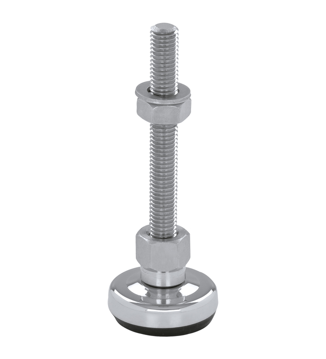 Maschinenfüße bzw. Stellfüße aus verchromtem Stahl haben durch die hochwertige Verchromung einen hohen Korrosionsschutz und eine glänzende Optik.