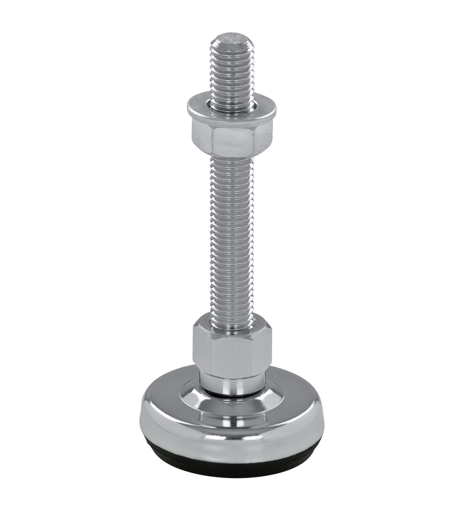 Maschinenfüße bzw. Stellfüße aus verchromtem Stahl haben durch die hochwertige Verchromung eine hohe Korrosionsbeständigkeit und eine glänzende Optik.