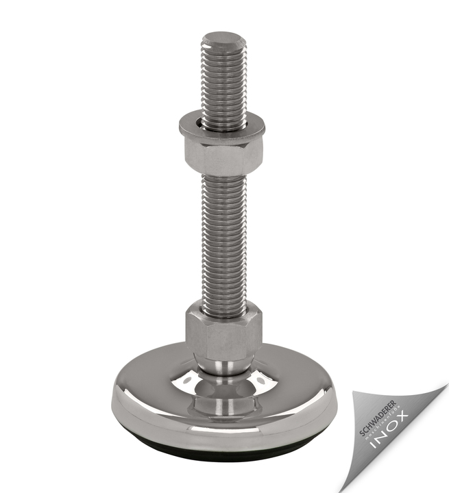 Der wartungsfreie Stellfuß SFE80 mit 80mm Durchmesser ist stufenlos über das Gewinde höhenverstellbar (je nach Spindellänge) und bis zu einem gewissen Grad neigbar, was die präzise Montage und Ausrichtung vereinfacht.
