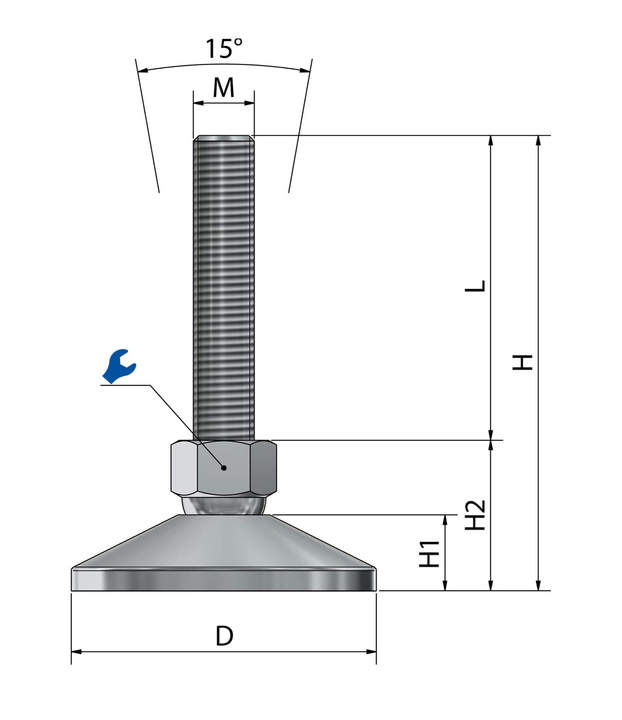 - Große Sechskant-Schlüsselflächen für die leichte Höhenverstellung