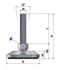 Der wartungsfreie Nivellierfuß bzw. Maschinenfuß JCMP80S mit 85mm Durchmesser ist stufenlos über das Gewinde höhenverstellbar (je nach Spindellänge) und bis zu einem gewissen Grad neigbar, was die präzise Montage und Ausrichtung vereinfacht.