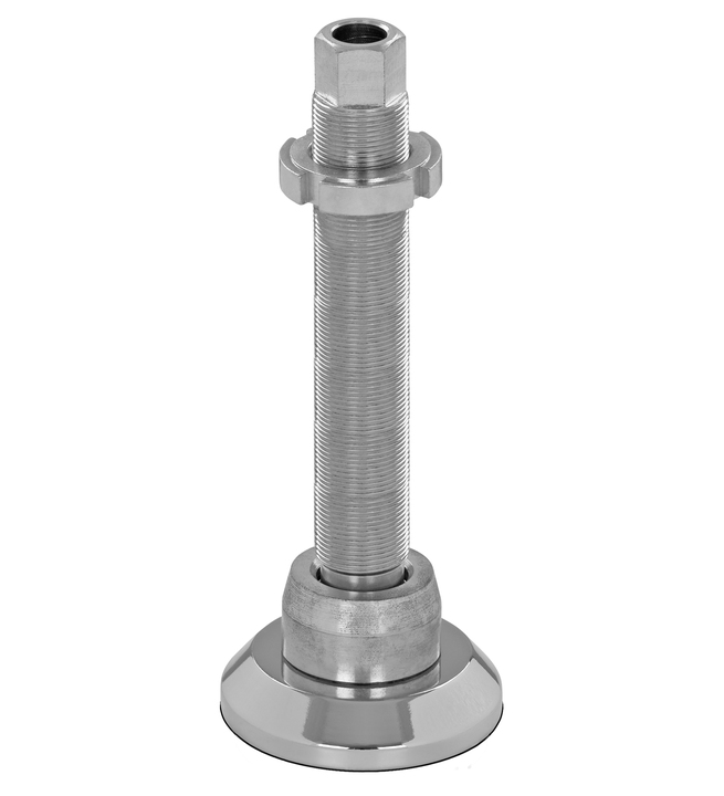 Unsere soliden Nivellierfüße bzw. Stellfüße mit verchromtem Gussteller finden Ihren Einsatz bei hohen dynamischen Beanspruchungen.