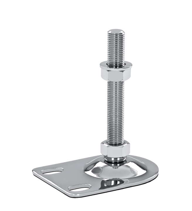 Stellfüße aus verchromtem Stahl haben durch die hochwertige Verchromung eine glänzende Optik.