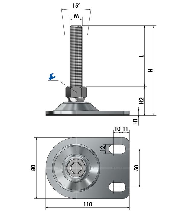 Die wartungsfreien Stellfüße sind stufenlos über das Gewinde höhenverstellbar (je nach Spindellänge) und bis zu einem gewissen Grad neigbar, was die präzise Montage und Ausrichtung vereinfacht.
