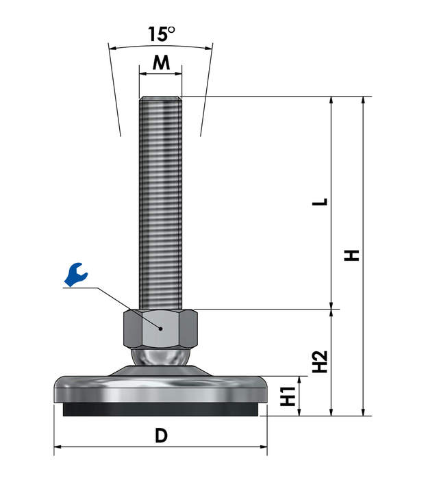 - Große Sechskant-Schlüsselflächen für die leichte Höhenverstellung